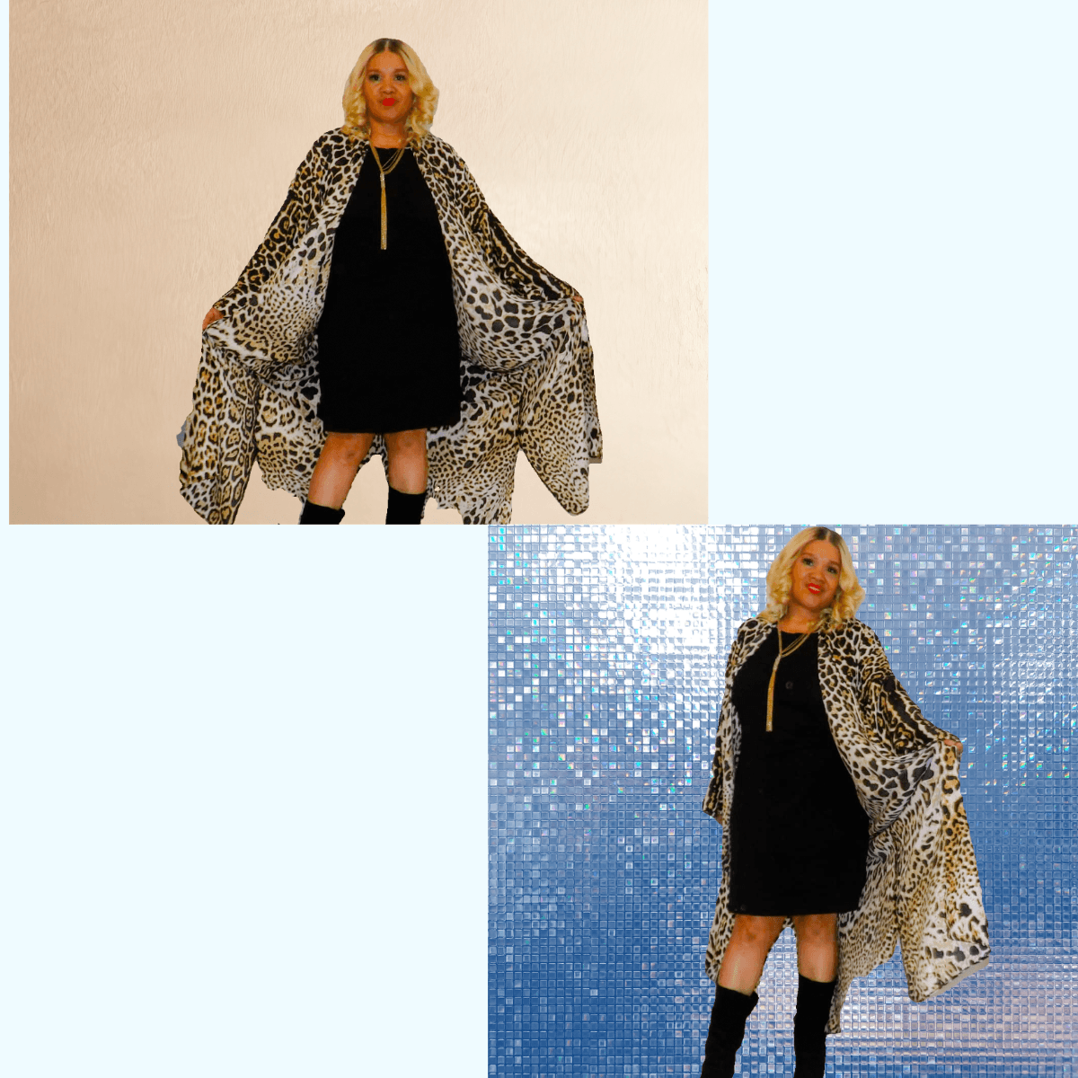Bold leopard print kaftan designed for confident layering and standout style.